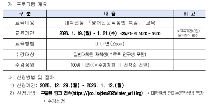 2025-2학기 PKNU Global역량강화(영어논문작성법 특강) 프로그램 신청 안내