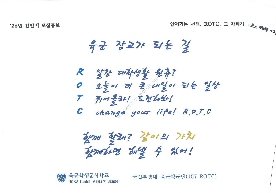 26년 전반기 육군 학군사관후보생 모집홍보 자료