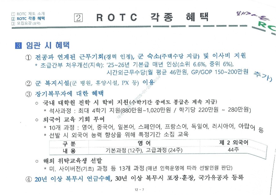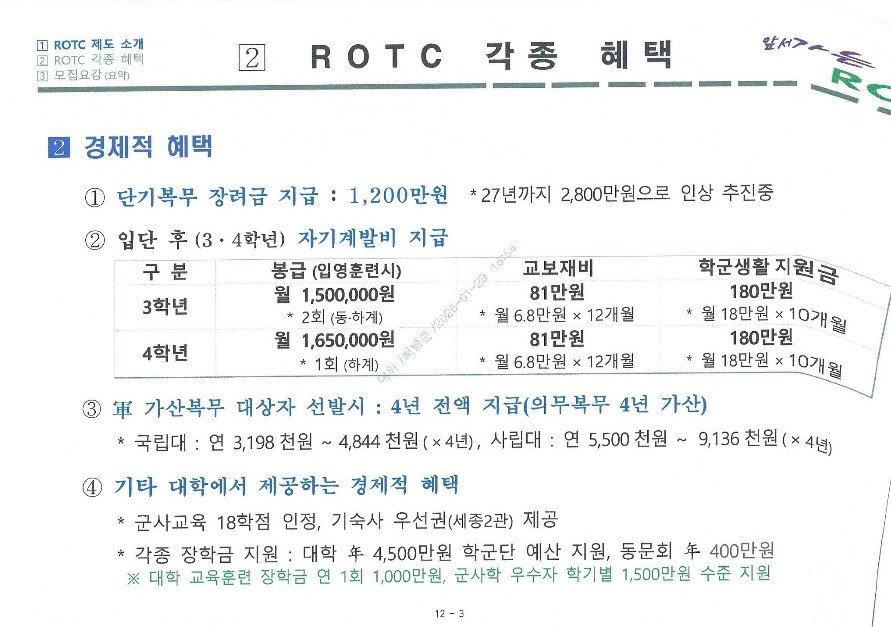 26년 전반기 육군 학군사관후보생 선발시 혜택