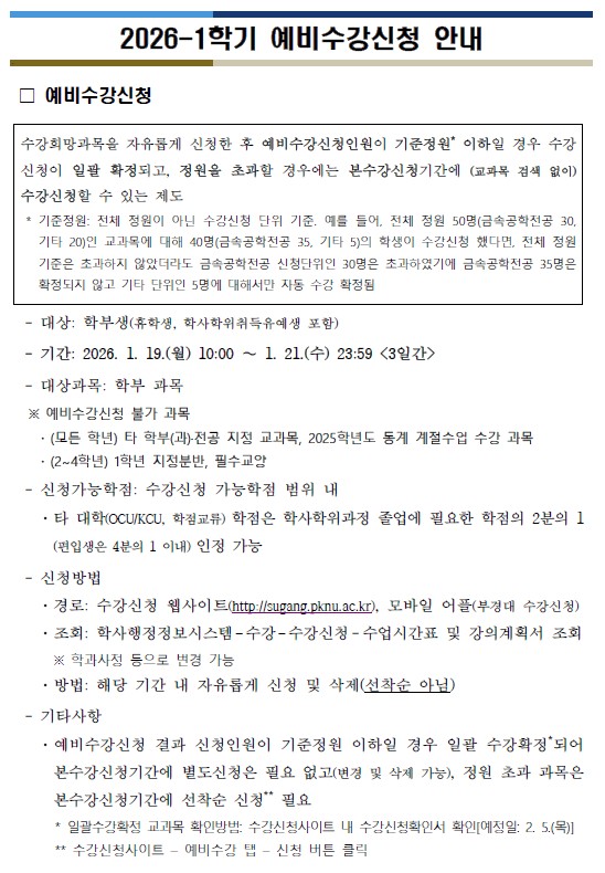 | 2026-1학기 학부 예비수강신청 안내 | |||