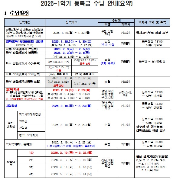 | 2026-1학기 등록금 수납 안내 | |||||||