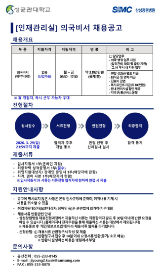 [삼성창원병원] 인재관리실 의국비서직 계약직 채용 공고