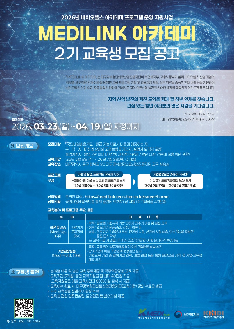 [대구경북첨단의료산업진흥재단] MEDILINK 아카데미 교육생 모집 안내