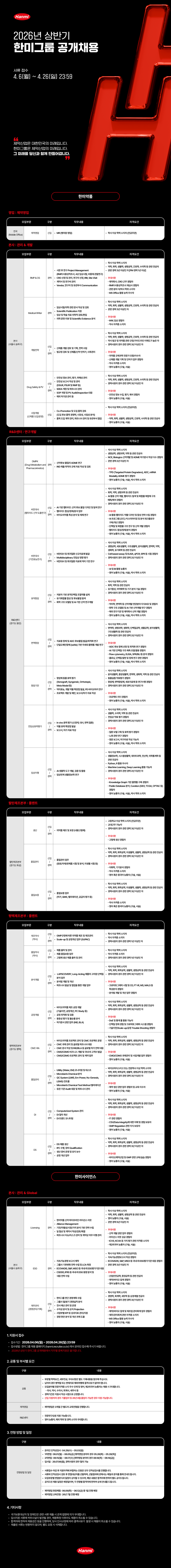 [한미그룹] 2026년 상반기 공개채용(~4/26)
