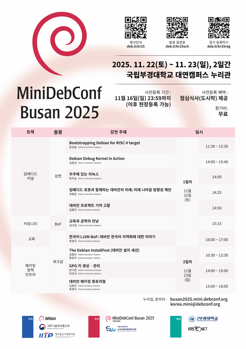 | [소프트웨어융합혁신원] MiniDebConf Busan 2025 참가자 모집 | |||