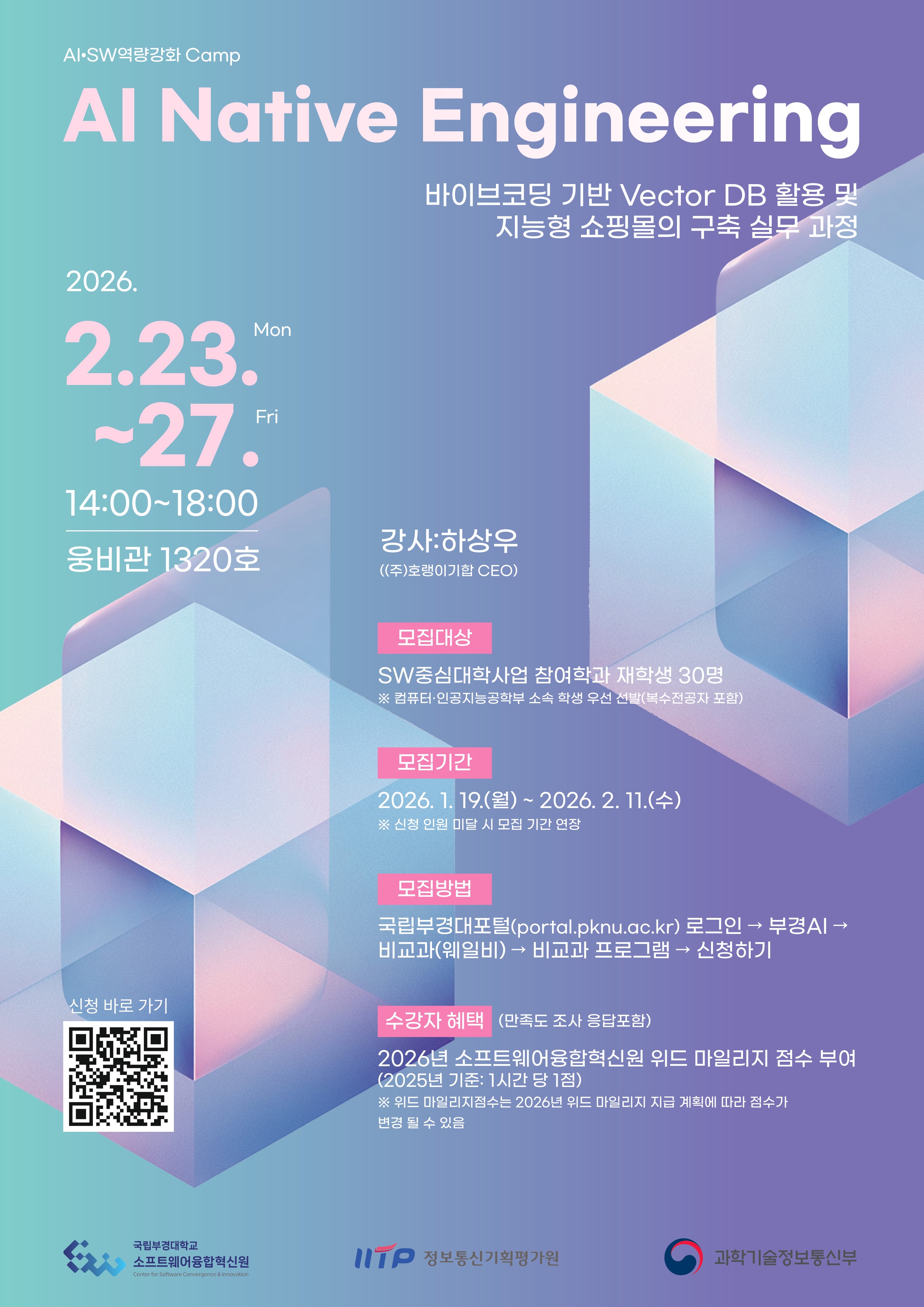 ■ 모집방법: 국립부경대포털(portal.pknu.ac.kr) 로그인 → 부경AI → 비교과(웨일비) → 비교과 프로그램 → 신청하기