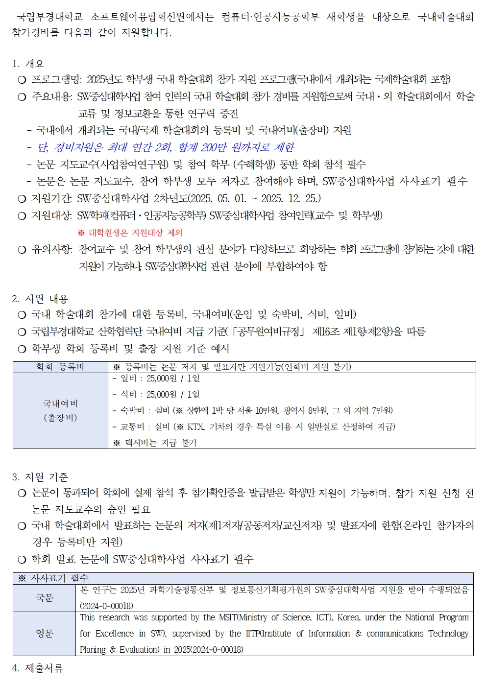 [소프트웨어융합혁신원] 2025년도 학부생 국내 학술대회 참가 지원 프로그램 변경 안내