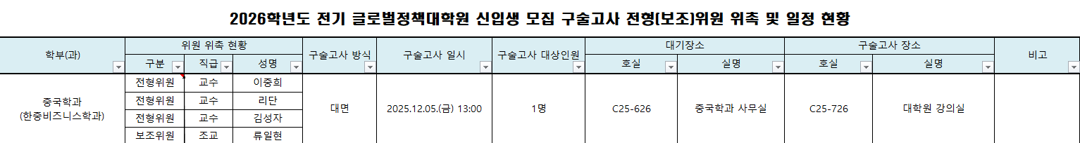 2026학년도 전기 글로벌정책대학원 입시 구술고사 일정 및 장소 안내