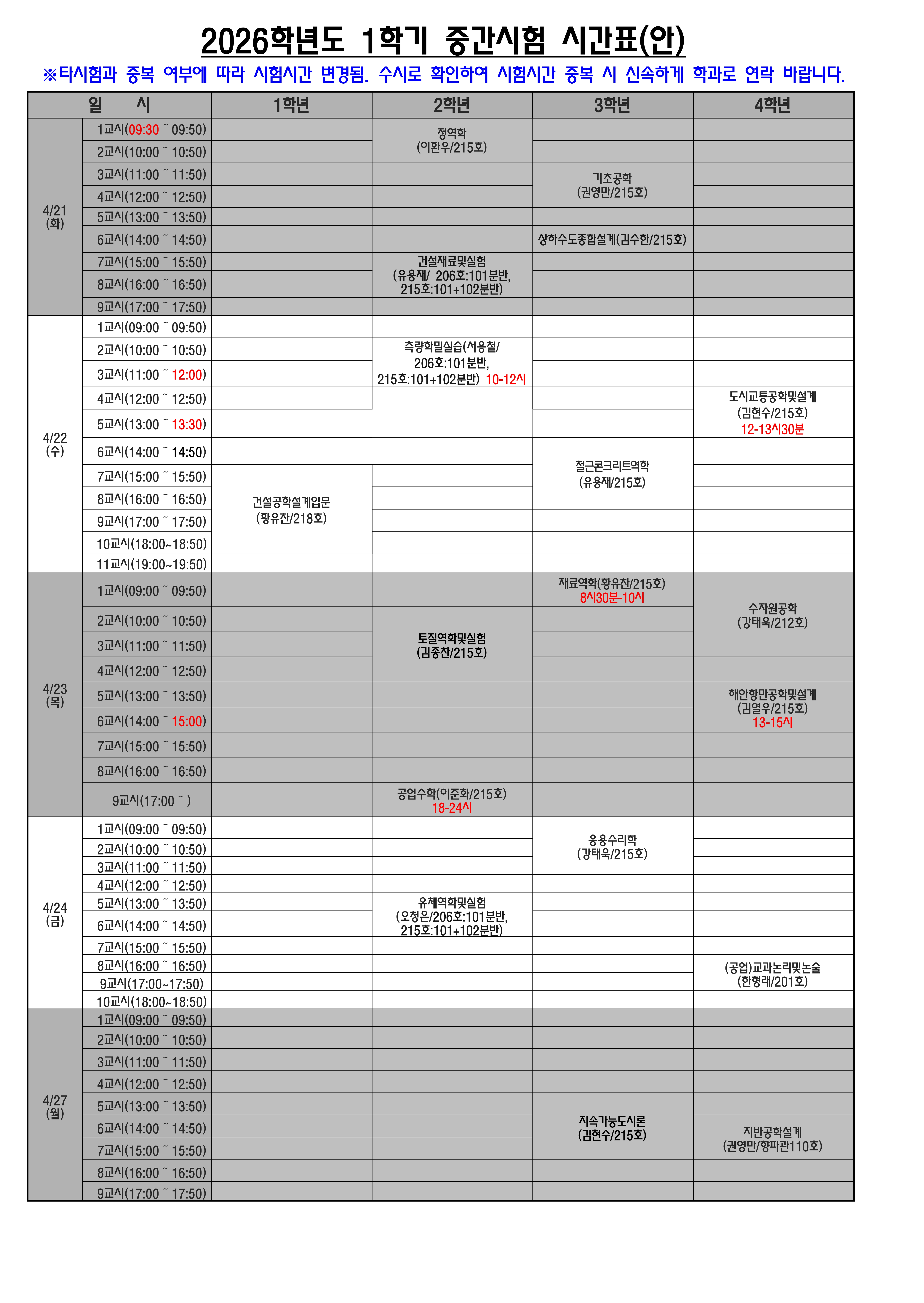 2026년 1학기 시험 일정표(중간고사)_최종