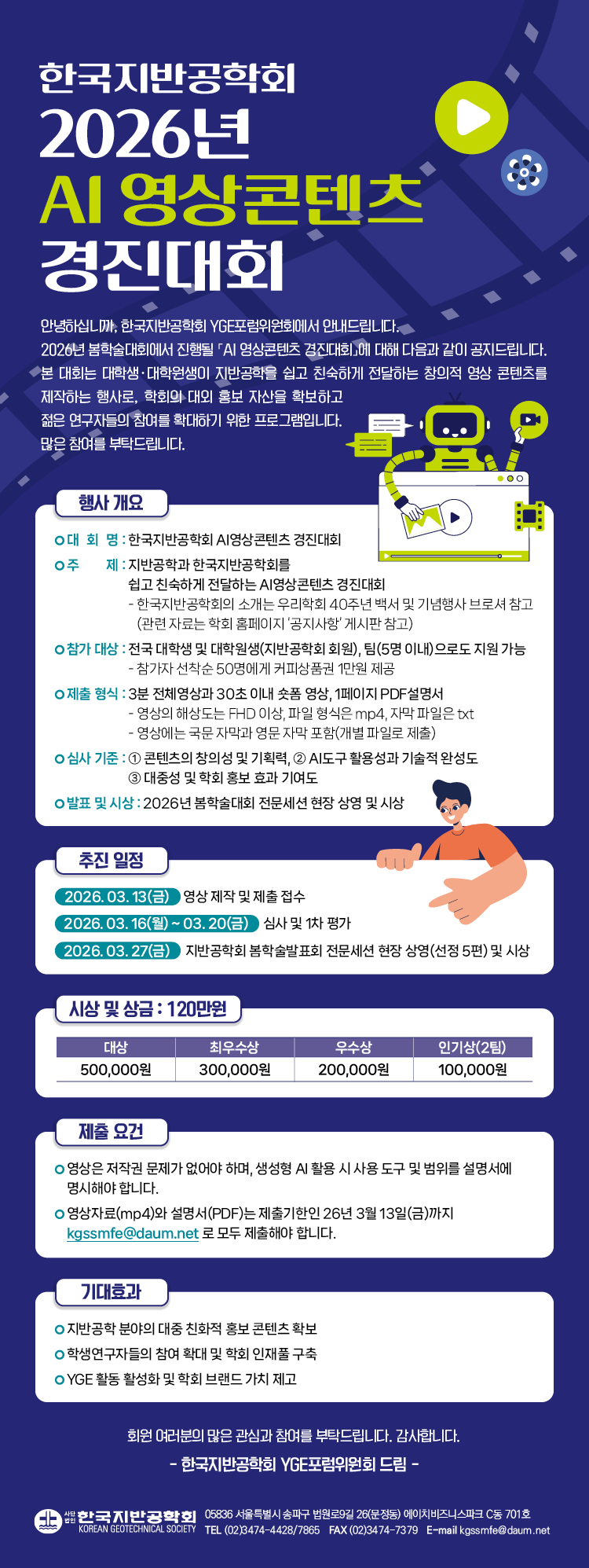 | 2026-043호 한국지반공학회 2026년 AI영상콘텐츠 경진대회 홍보 및 신청 안내 | |||