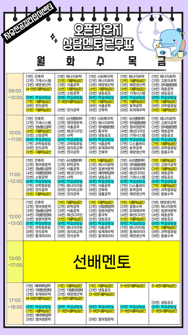 자유전공학부 오픈라운지 전공 상담시간표 공지 (11. 24. ~ 11. 28.)