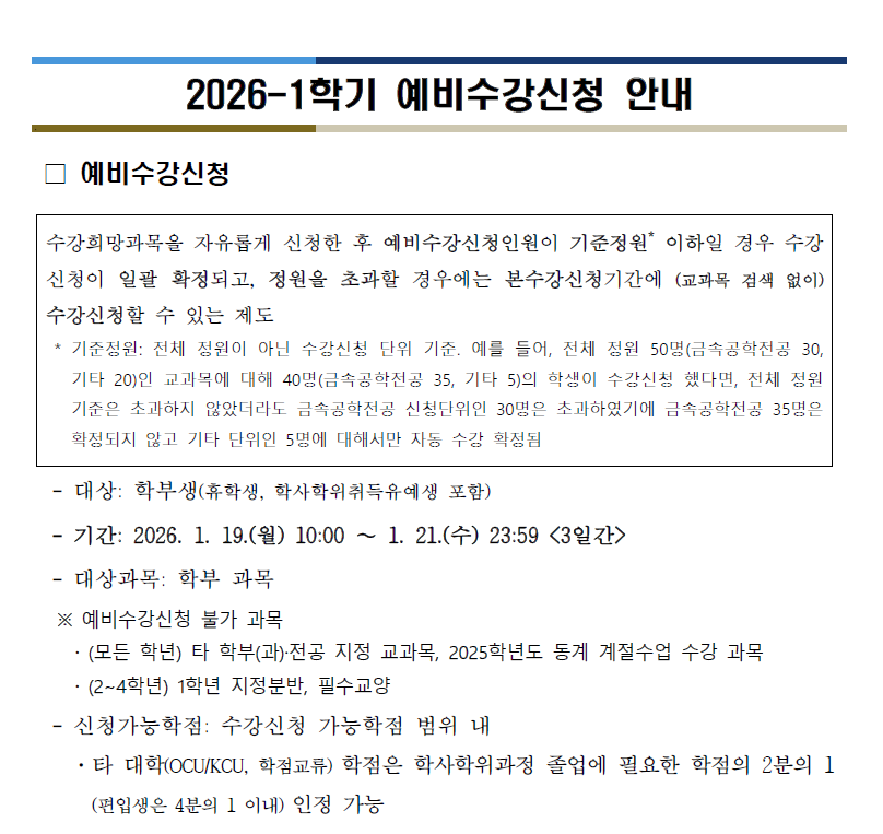 2026년 1월 자유전공학부(단과대학 소속 포함) 전공배정 실시 안내