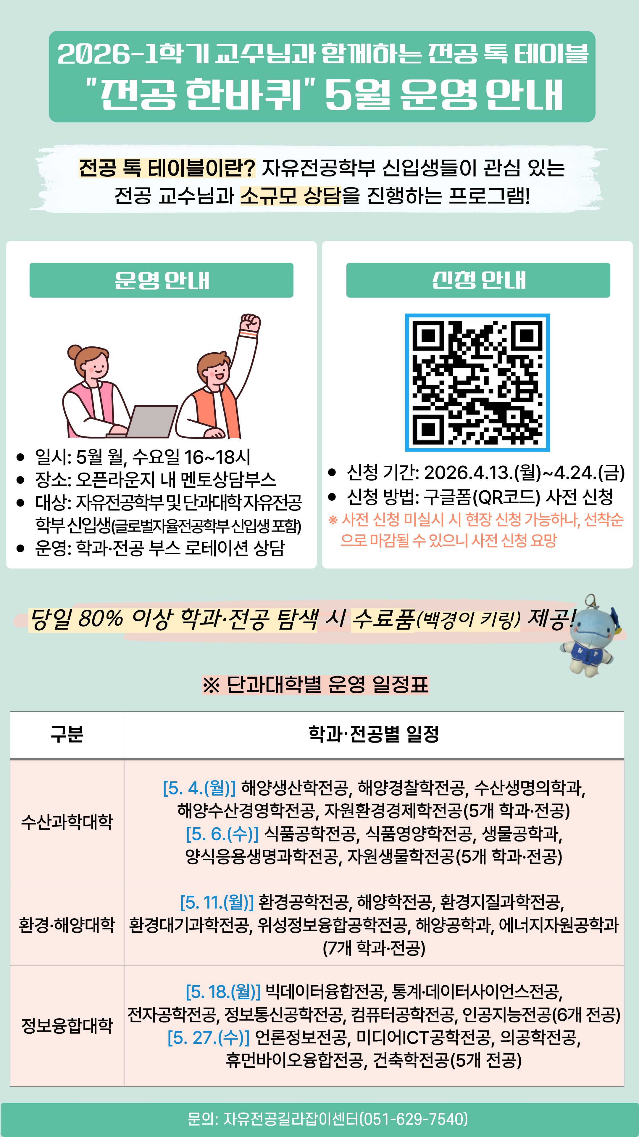 | 2026-1학기 교수님과 함께하는 전공 톡테이블 "전공 한바퀴" 신청 안내(5월) | |||