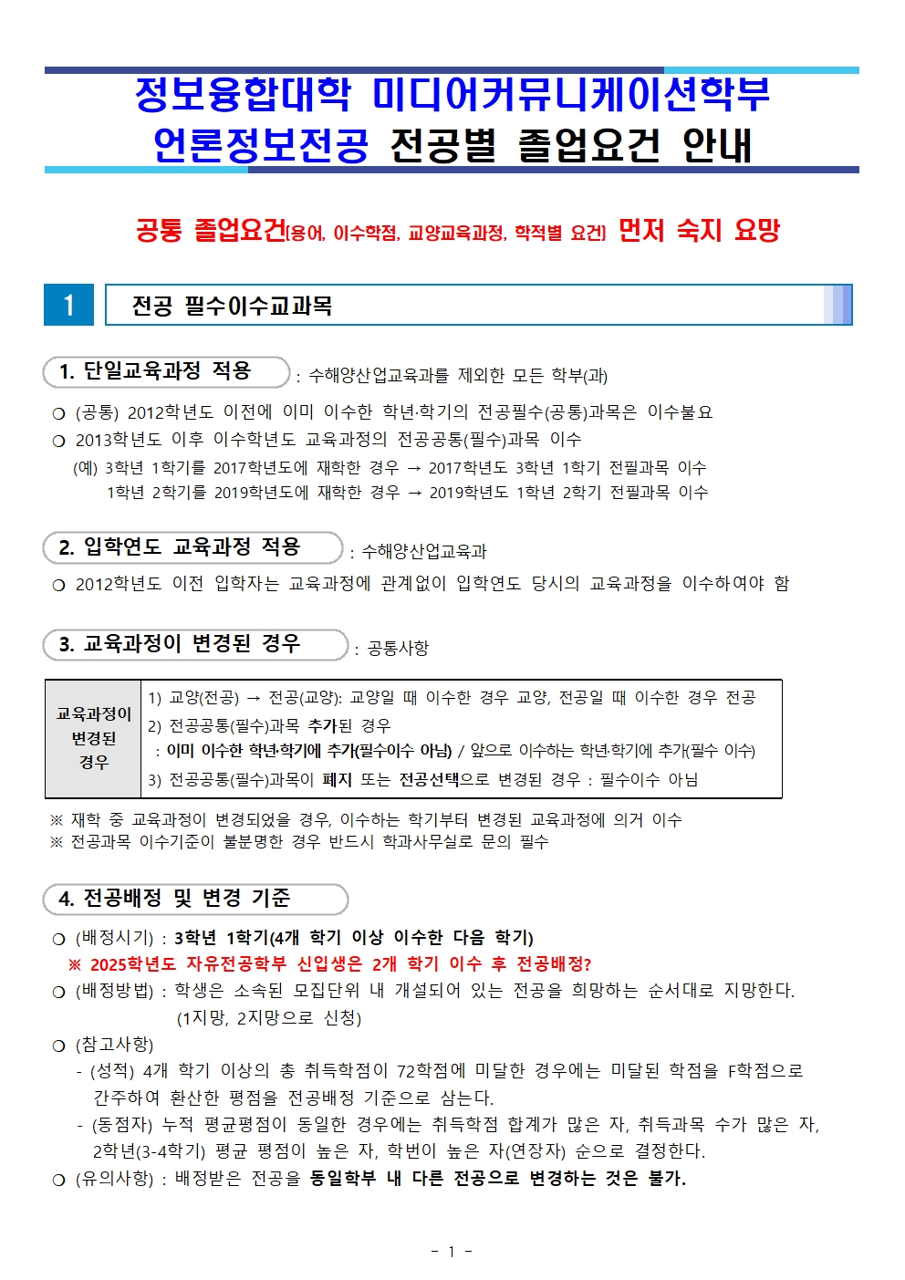 미디어커뮤니케이션학부 언론정보전공 졸업 조건(2026학년도 기준)