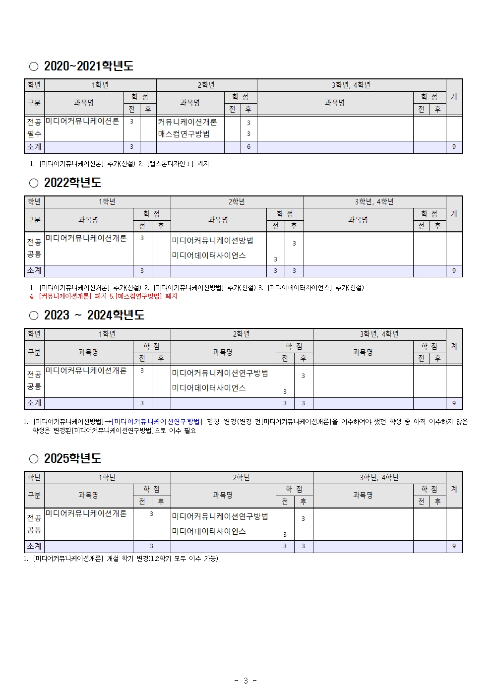 · [미디어커뮤니케이션개론] 추가 · [캡스톤디자인Ⅰ] 폐지 |