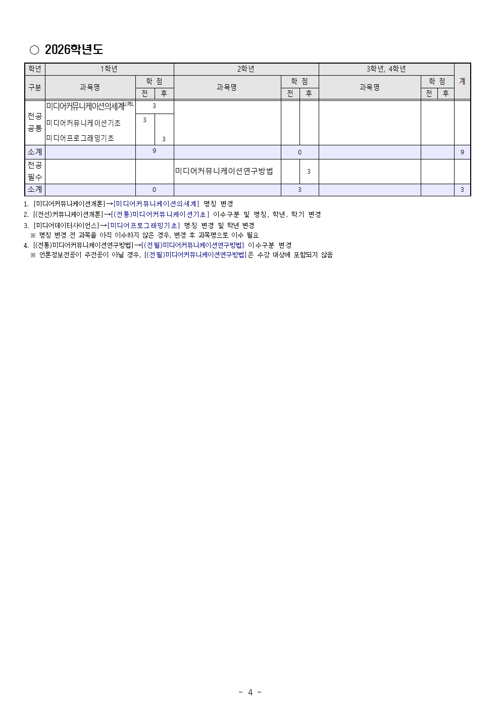<2026학년도 미디어커뮤니케이션학부 교육과정 변경사항 안내>