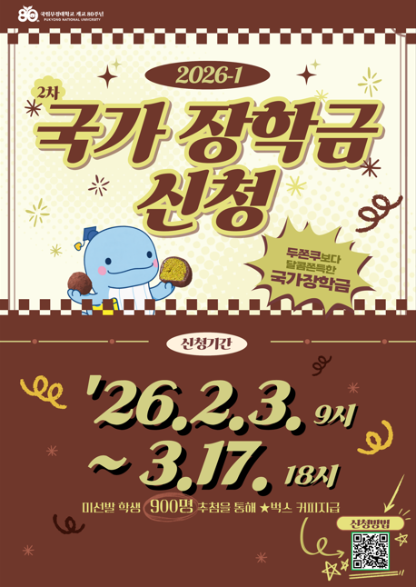 | 다음 | 2026년도 1학기 국가근로장학금 대학신청 기간연장 안내 |