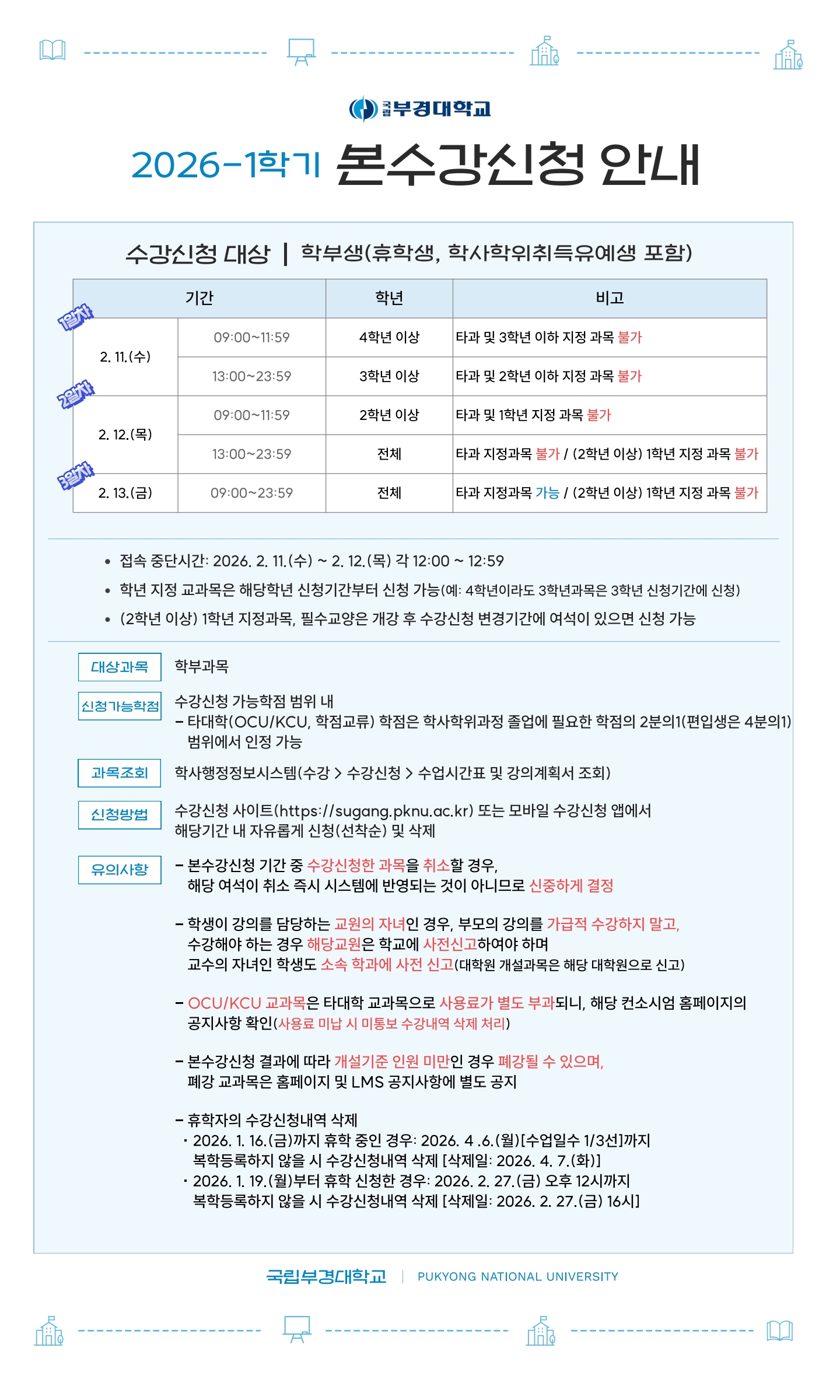 | 2026학년도 1학기 본수강신청 실시 안내 | |||