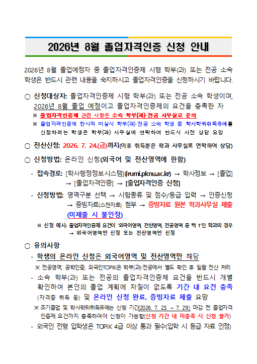 | 2026년 8월 졸업자격인증 신청 안내 | |||