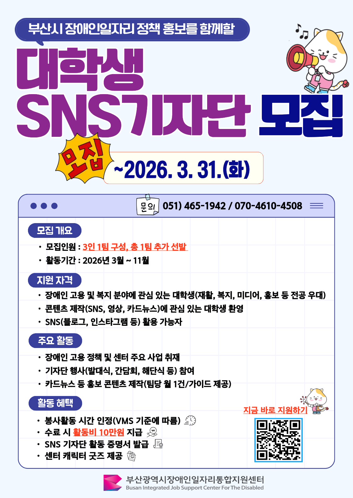 부산시 장애인일자리 정책 홍보를 함께 할 대학생 SNS 기자단 모집 안내