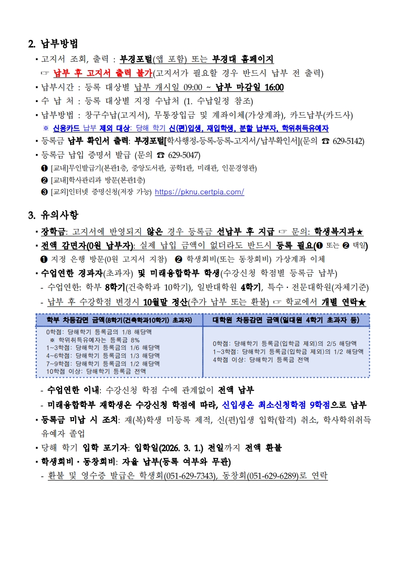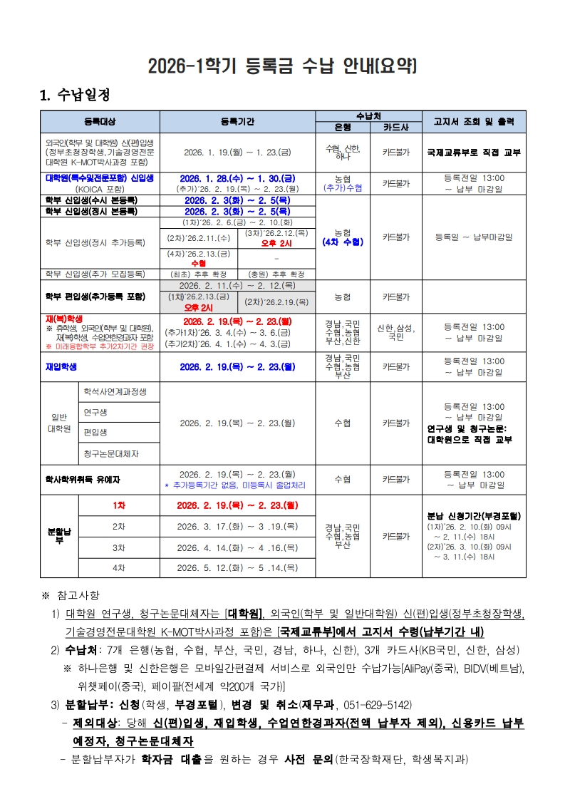 | 2026학년도 1학기 등록금 수납 알림 | ||||||||||||||||