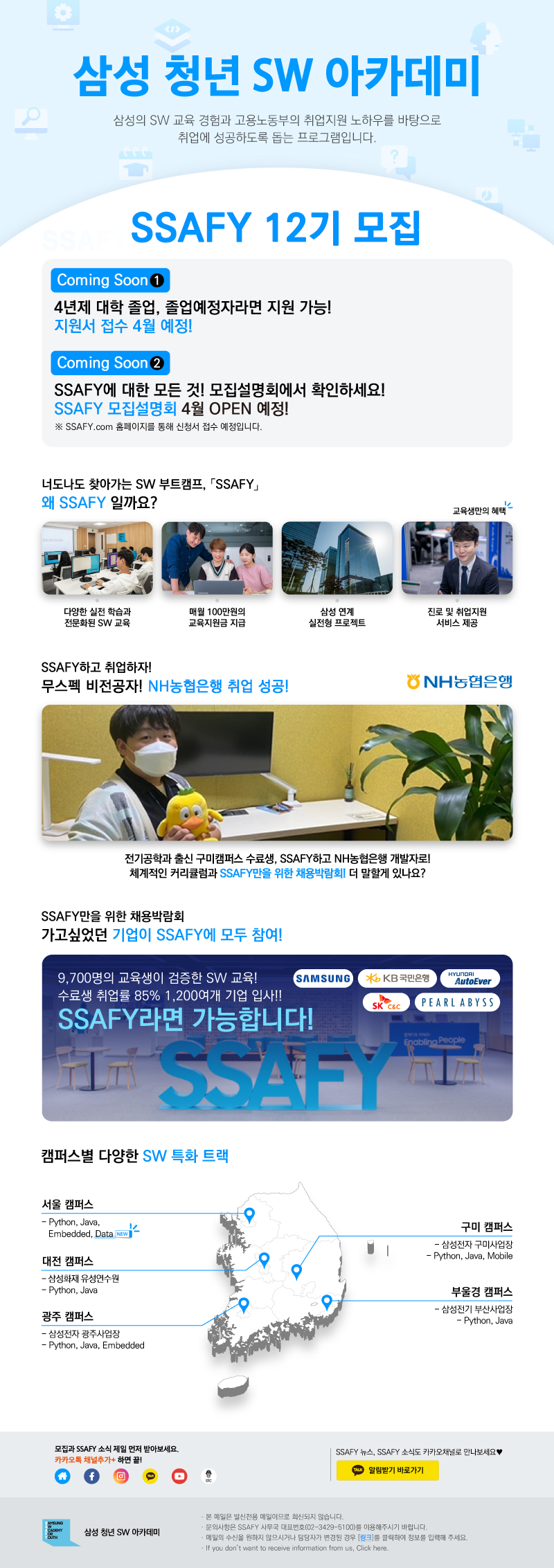 「삼성 청년 SW 아카데미」12기 교육생 모집! Coming Soon!