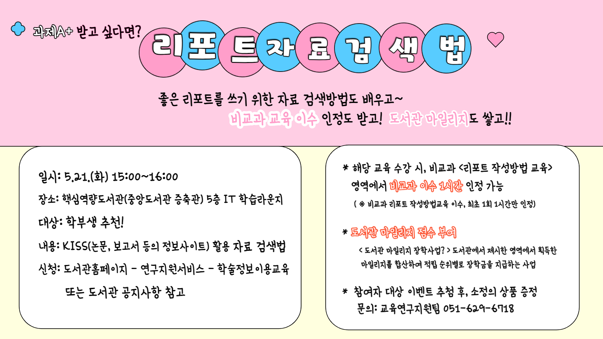 | [도서관] 리포트 자료 검색법 교육 안내 | |||||||||||||||||||||||