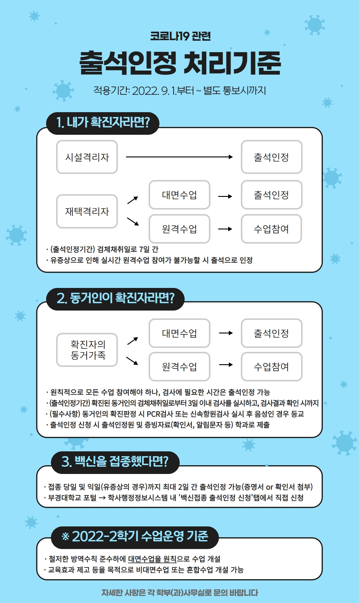 | 2022학년도 2학기 코로나19 출석인정 처리기준 안내 | |||