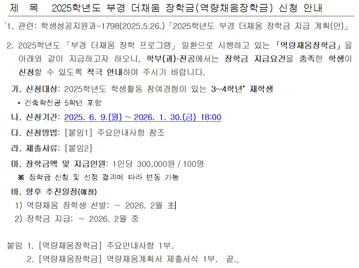 2025학년도 부경 더채움 장학금(역량채움장학금) 신청 안내
