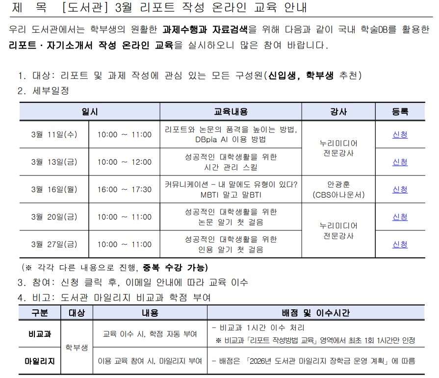[도서관] 3월 리포트 작성 온라인 교육 안내