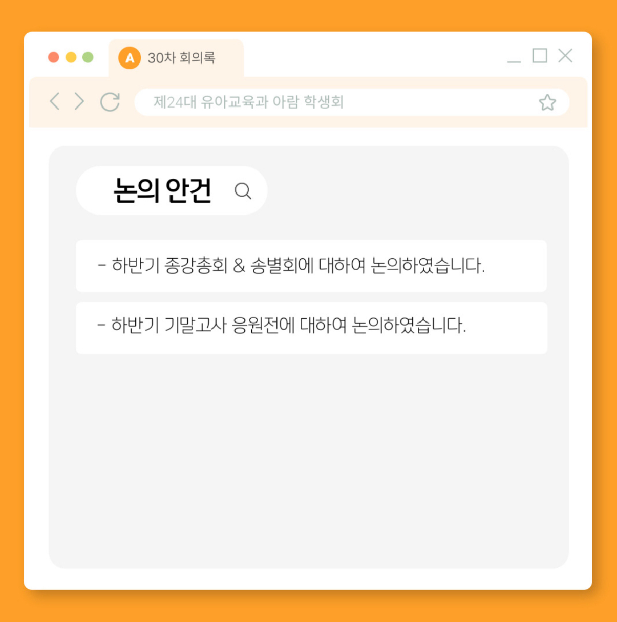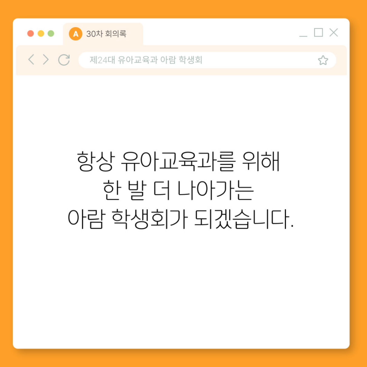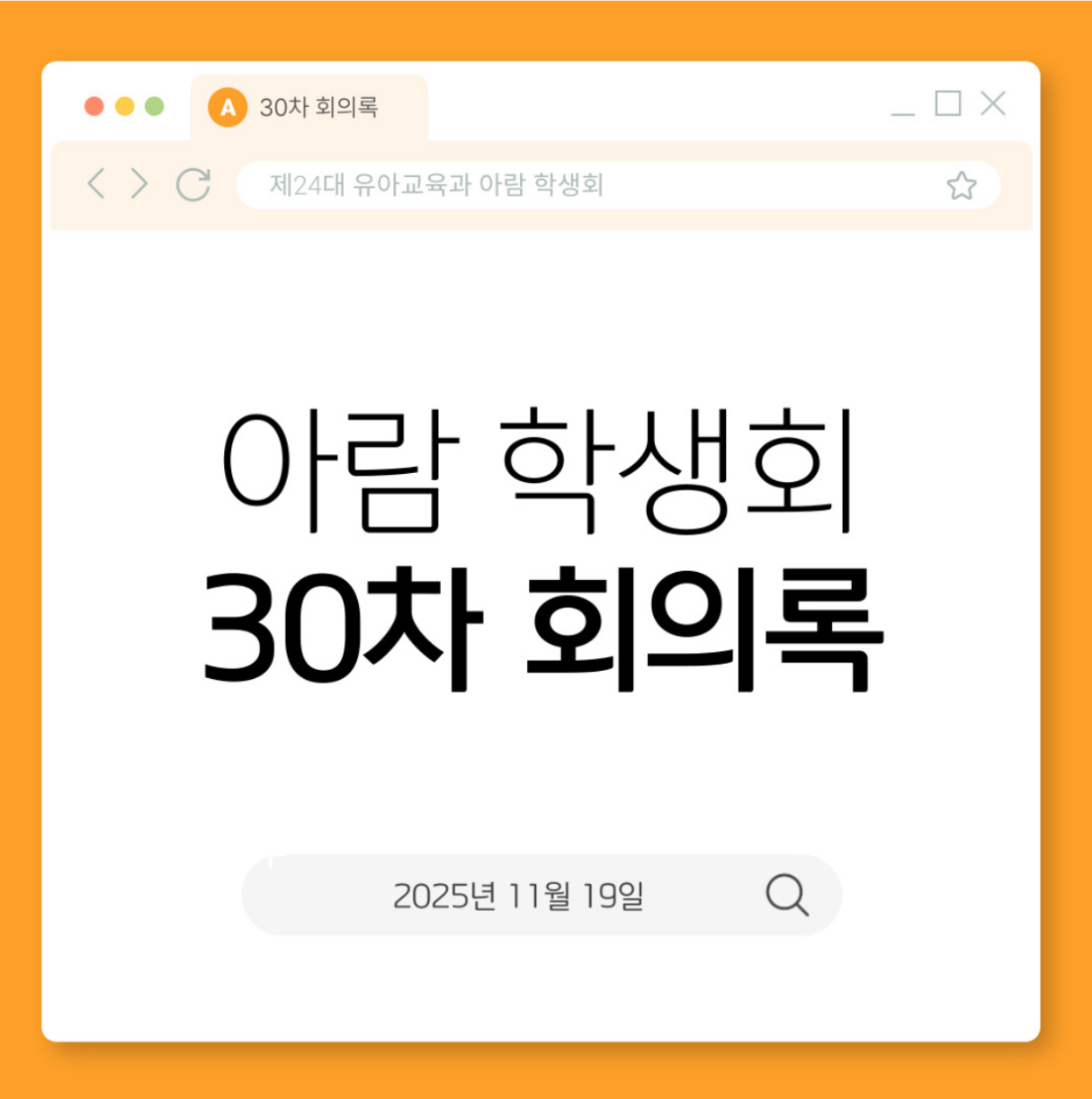 안녕하세요, 아람 유아교육과 학생회입니다! 아람 학생회의 30차 회의록을 공개합니다. 회의록은 부경대 유아교육과 인스타그램을 통해서도 확인하실 수 있으니 참고 바랍니다!