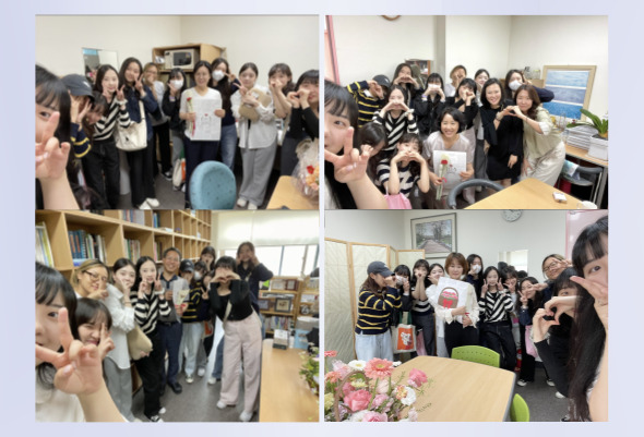 2023년 5월 15일, 스승의 날을 맞이하여 교수님들의 연구실에 방문해 손 편지 롤링페이퍼, 꽃 한 송이와 함께 유아교육과 학우분들의 감사한 마음을 전달드렸습니다. 손 편지 롤링페이퍼는 학생회실에 일정 기간 동안 게시하여 학우분들이 자유롭게 마음을 표현할 수 있도록 했고, 개인적인 사정으로 손 편지를 직접 남기지 못하는 분들께는 카카오톡 오픈채팅방을 통해 편지를 전달받아 학생회 측에서 직접 작성하는 방식으로 진행하였습니다. 늘 저희를 위해주시는 교수님들께 다시 한번 감사의 말씀 전합니다.