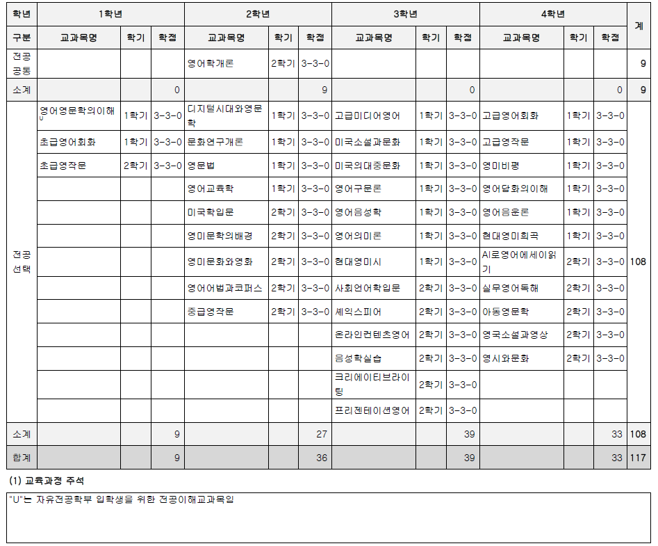 | 영미비평 | British & American Literature Criticism | 본 강좌는 영문학의 비평이론을 작품을 통해 접근하고 이해한다. |