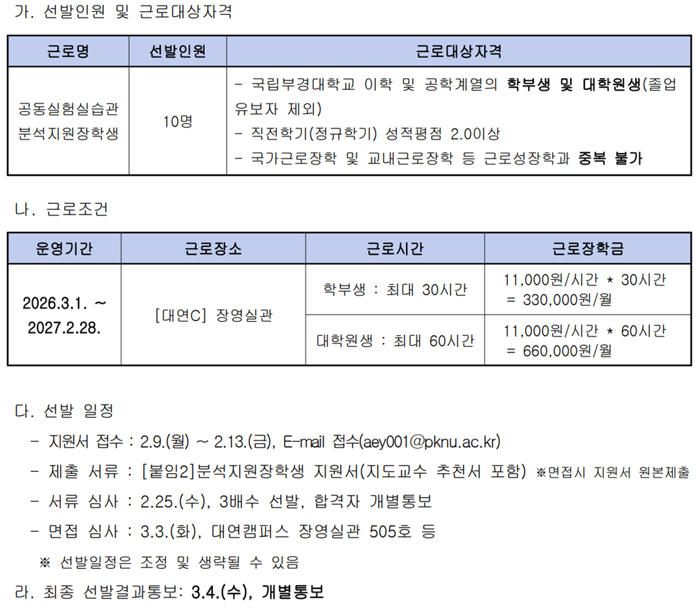 [장학]2026학년도 공동실험실습관 분석지원장학생 신청 안내