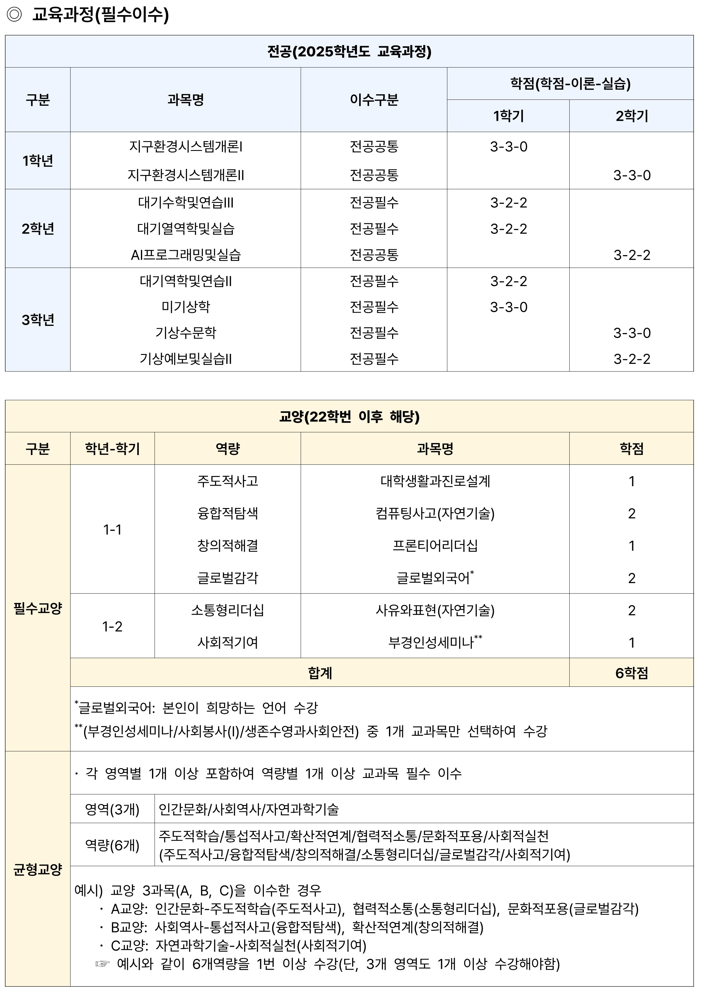 환경대기과학전공 학부생 학사안내자료 다운로드(클릭)