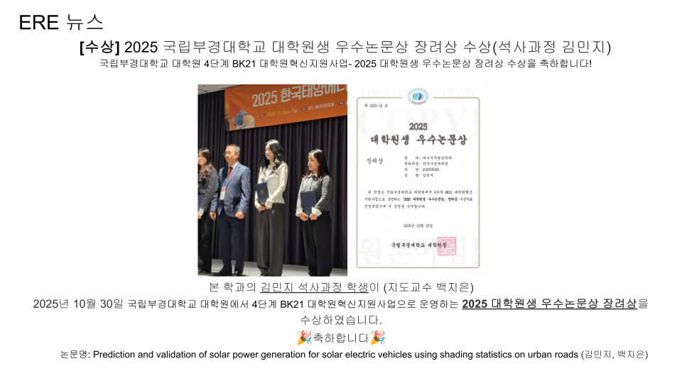 [수상] 2025년 한국태양에너지학회 추계학술발표대회 우수발표상(포스터부문)수상 (학생연구원 이지현,김다은)
