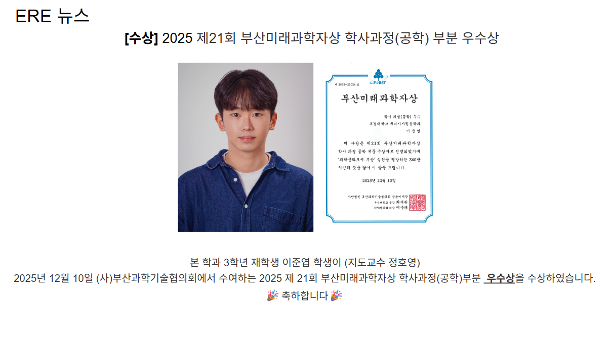 [수상] 2025 제21회 부산미래과학자상 학사과정(공학) 부분 우수상