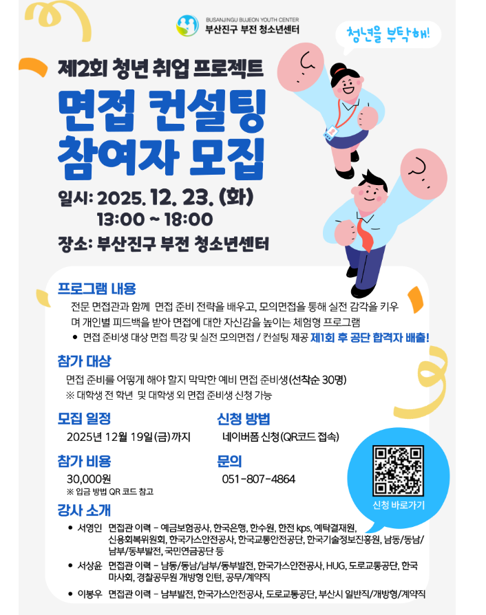 [부산진구 부전 청소년센터] 제2회 청년 취업 프로젝트 - 면접관의 관점에서 본 취업 면접 컨설팅 모집