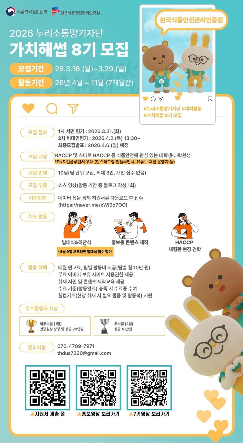 2026 누리소통망기자단 가치해썹 8기 모집 HACCP~