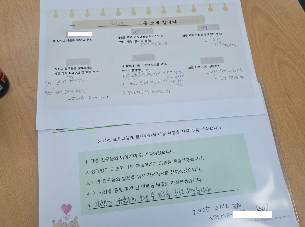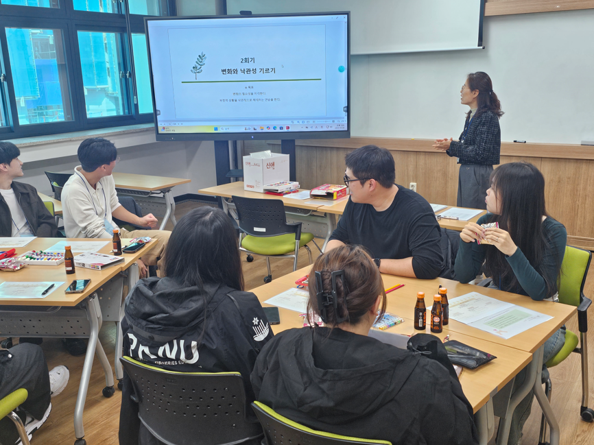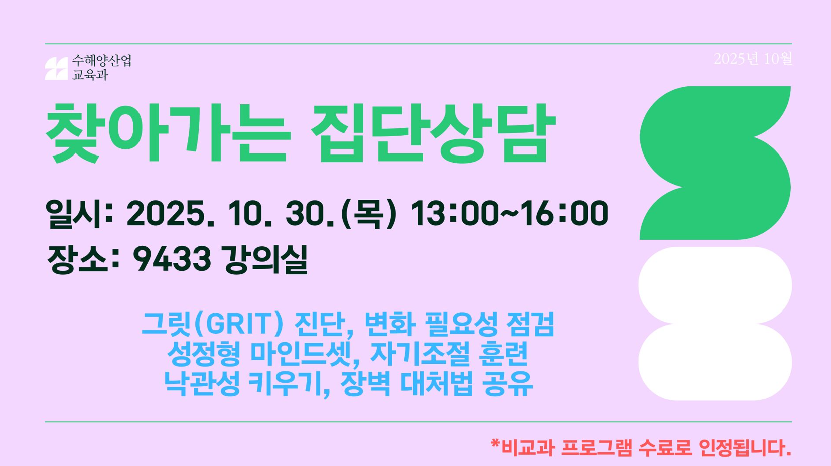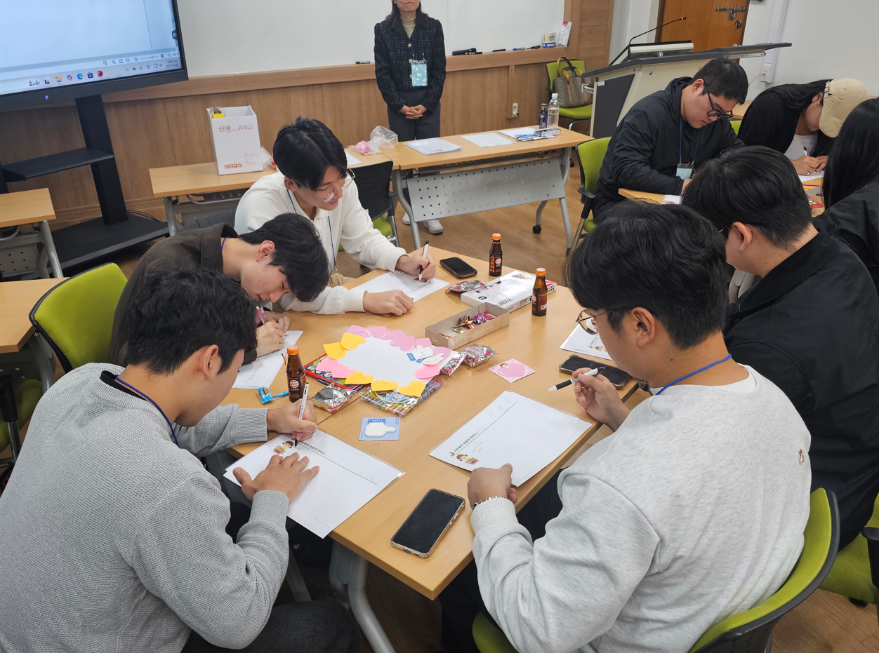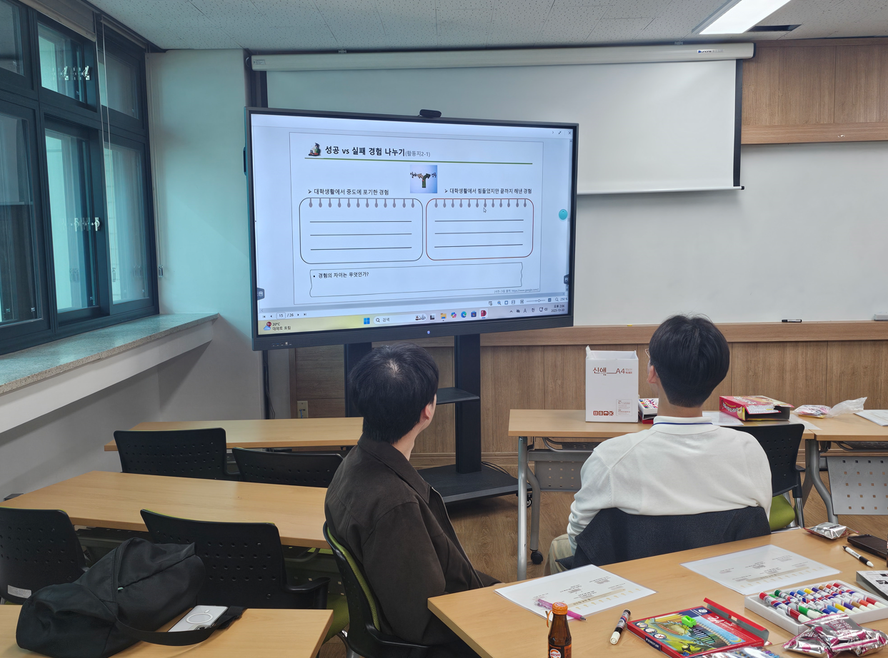 2025 찾아가는 집단상담 1. 일시: 2025. 10. 29.(목) 13:00 ~16:00 2. 장소: C21-9433(수업행동분석실) 3. 인원: 9명(1학년 1명, 2학년 1명, 3학년 5명, 4학년 2명) 4. 주관: 학생상담센터