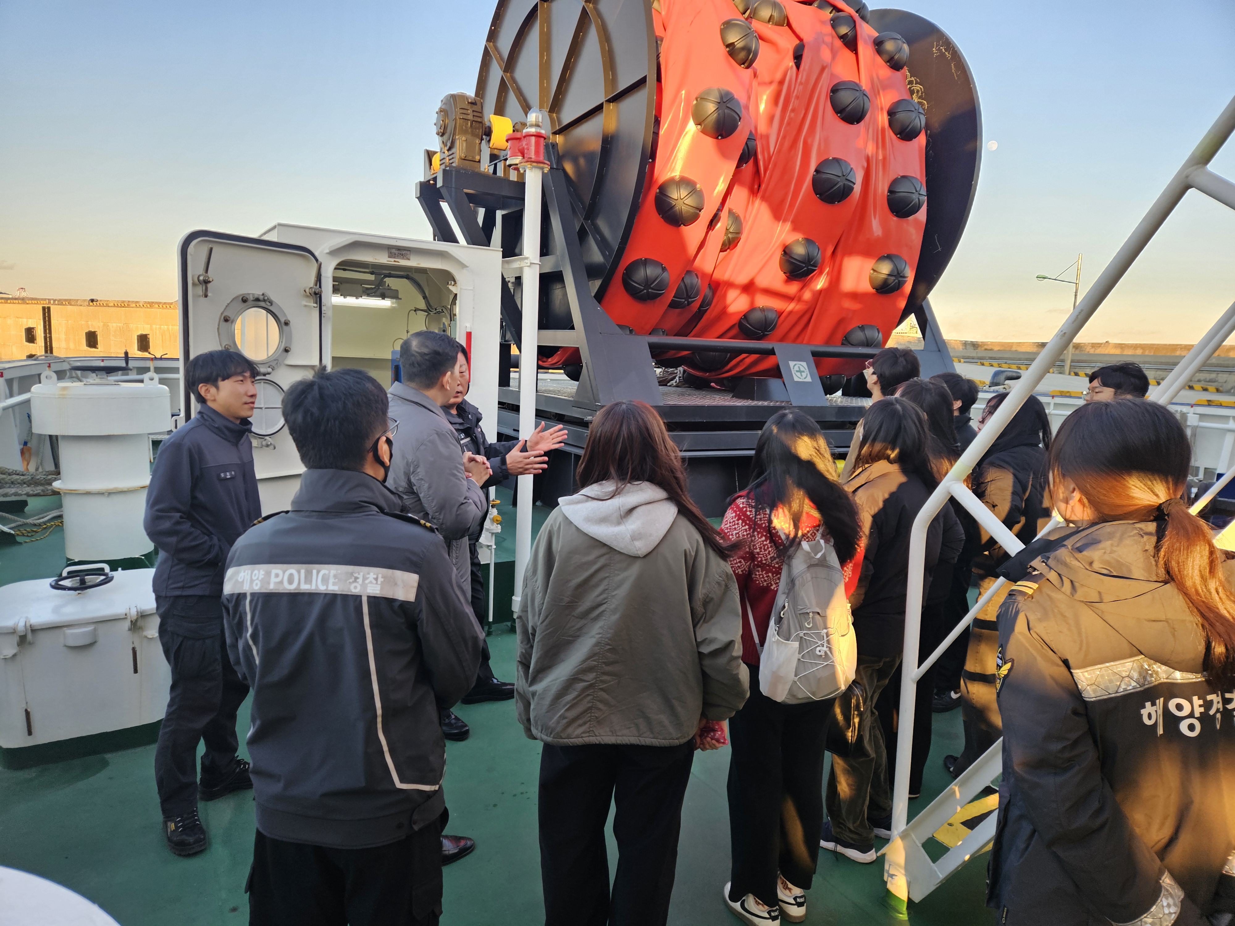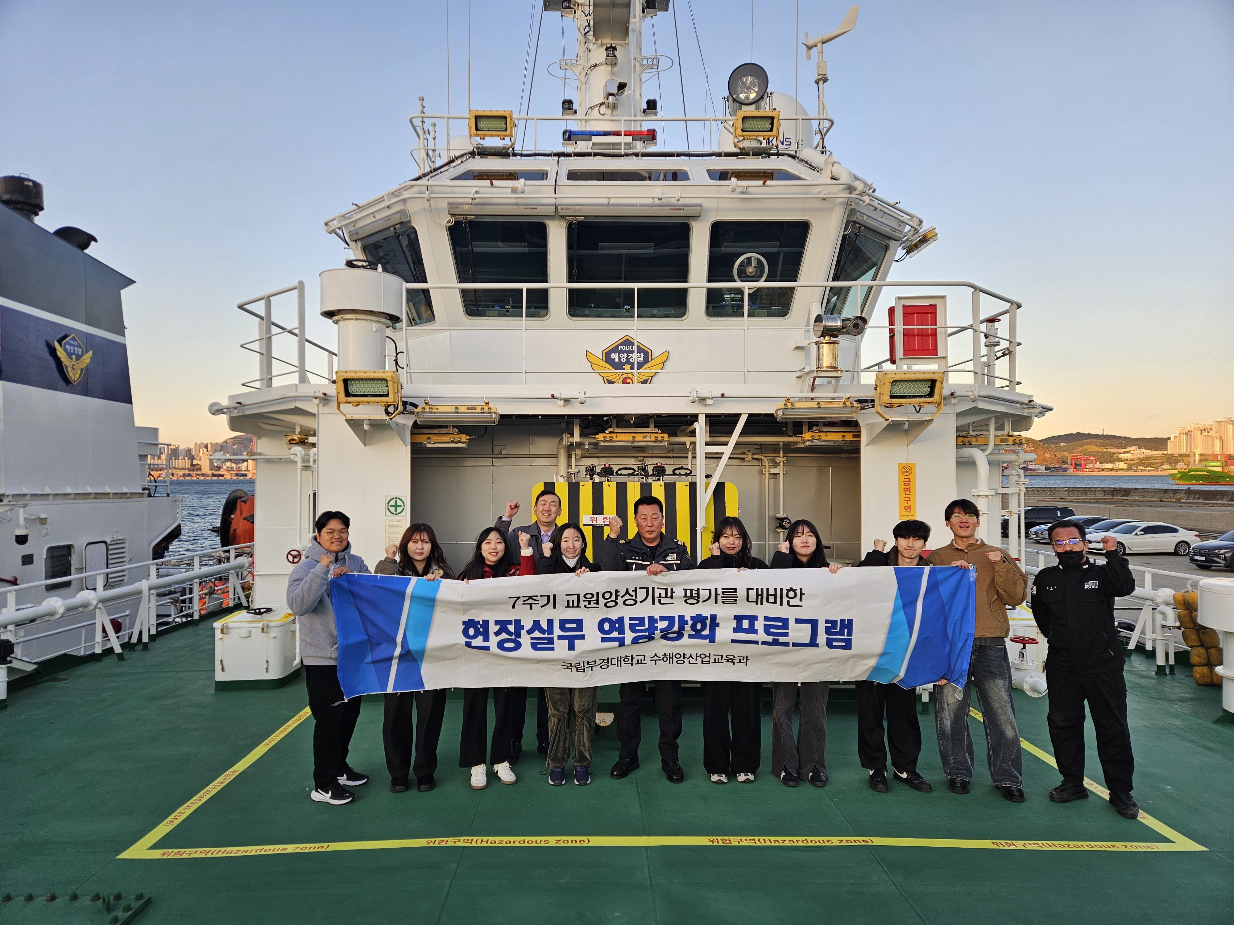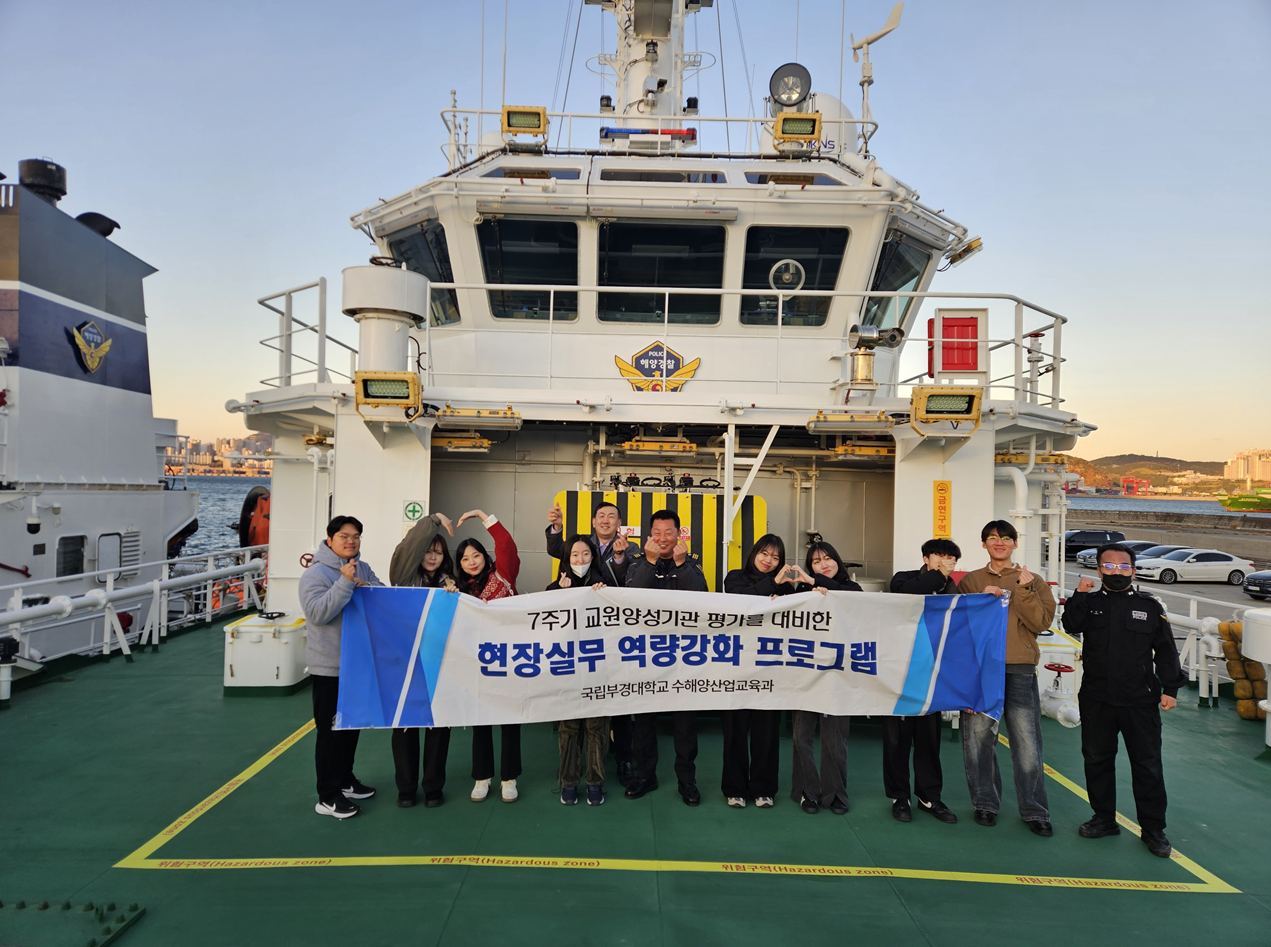 <2025학년도 국립대학육성사업 전공탐방 프로그램> -일시: 2025. 12. 3.(수) 16:00~18:00 -장소: 부산해양경찰서 -2025-2학기 해양오염방제론 교과목 -대상: 수강생 8명 -지도교수:이태호 교수