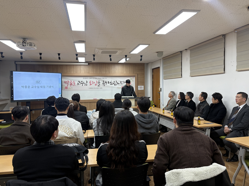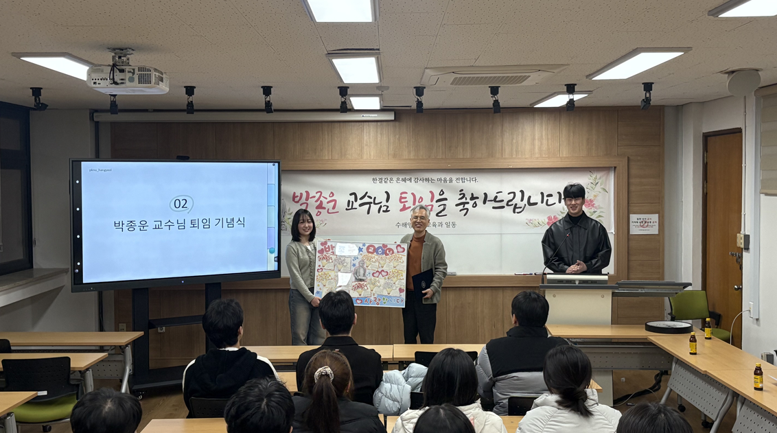 2025학년도 2학기 종강총회 -일시: 2025. 12. 5. (금) 18:00~ -장소: C21-9433 -내용 1. 학과장 인사말 2. 교수님 소개 3. 박종운 교수님 퇴임 기념식 4. 학생회 2학기 활동 보고 5. 전공스터디 결과 보고 6. 1년을 마무리 하며 (선후배 소통) 7. 폐회