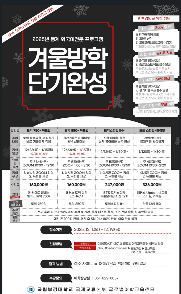겨울방학 단기완성 '동계 외국어전문 프로그램'