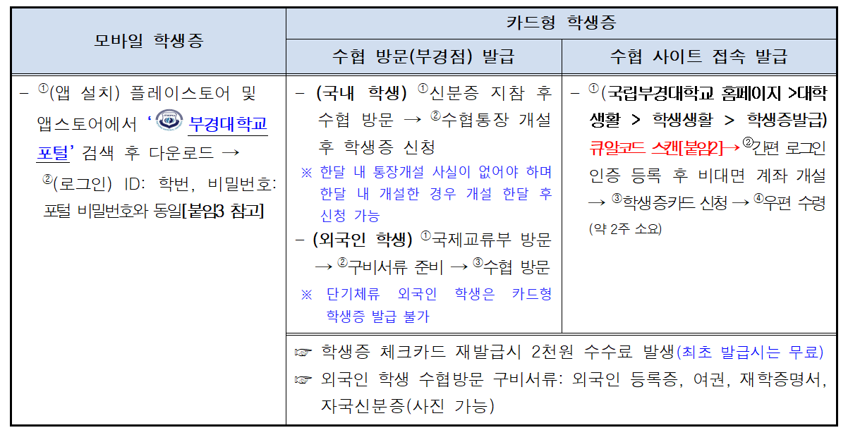 국립부경대학교 학생증 발급 안내 우리 대학 학생증 발급절차를 아래와 같이 안내하니 참고 바랍니다.