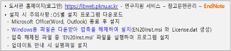 5. EndNote 동영상 매뉴얼 안내 -「EndNote 20 온라인 강의」: https://www.youtube.com/watch?v=qQzFHA8CaUk |
