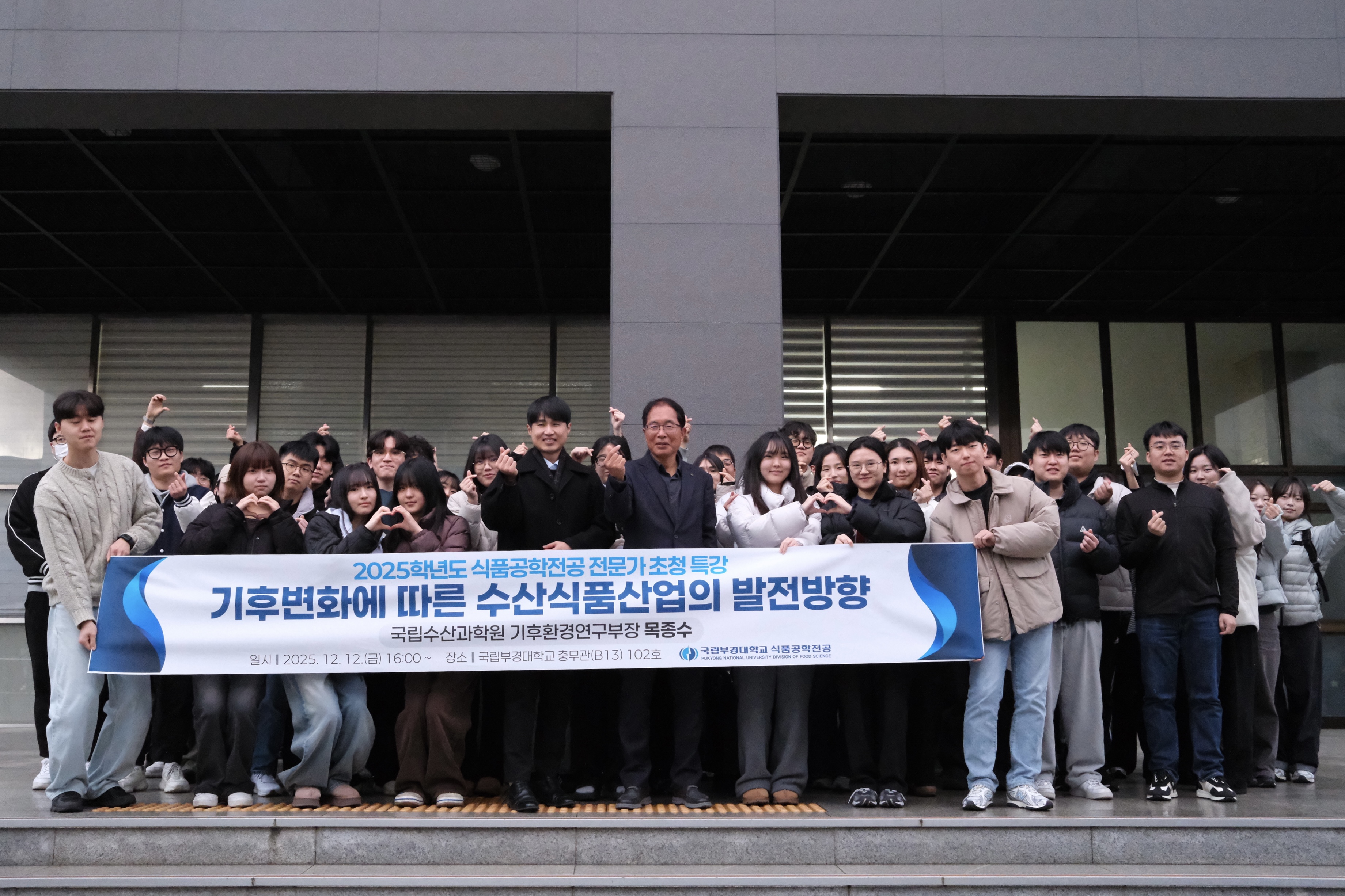 2025년 식품공학전공 전문가 초청 강연 개최2025년12월 12일 본 전공에서는 2025년 식품공학전공 전문가 초청 강연을 개최하였습니다. 목종수 부장님은 기후변화가 해양 생태계와 식품 산업에 미치는 영향, 지속 가능한 수산자원 확보 전략, 그리고 미래 식량으로 주목받는 블루푸드(Blue Food)의 연구·산업적 가능성에 대해 심도 있는 내용을 전달해 주었습니다. 강연 현장의 모습은 아래 사진과 함께 확인하실 수 있습니다.