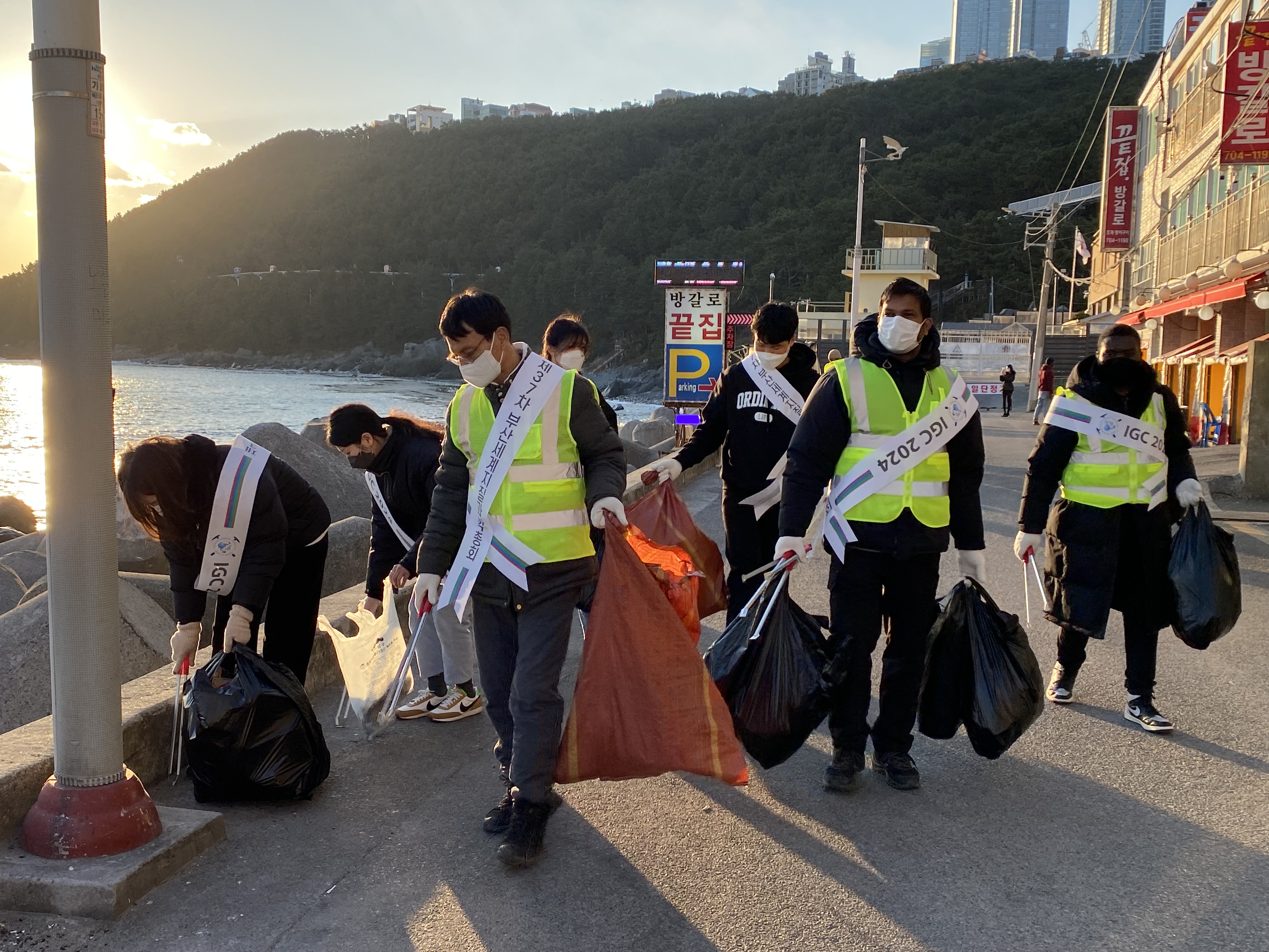 Picking up trash on Cheongsapo beach and IGC 2024 promotion.