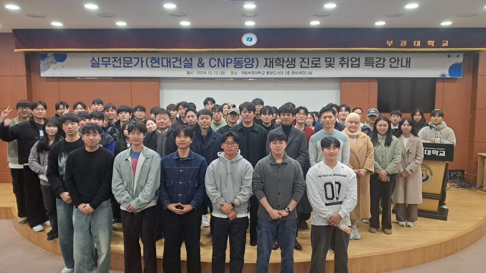 강사: 현대건설, CNP동양 재직자 일시: 2024. 12. 13.(금) 장소: 국립부경대학교 대연캠퍼스 중앙도서관 2층 영상 세미나실