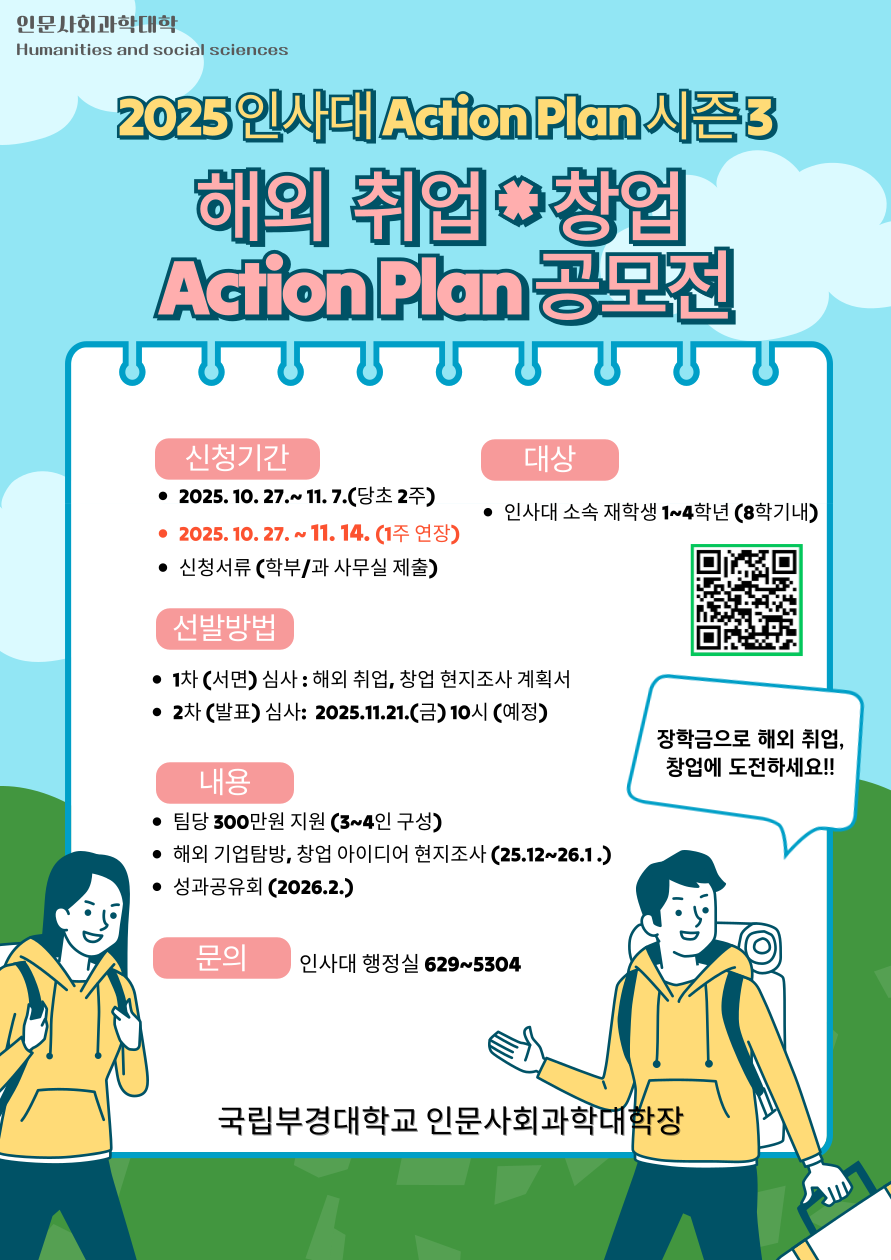 | [PKNU-꿈·미래 교내장학사업]2025학년도 인사대 해외 취창업 Action Plan 공모전 안내 | |||