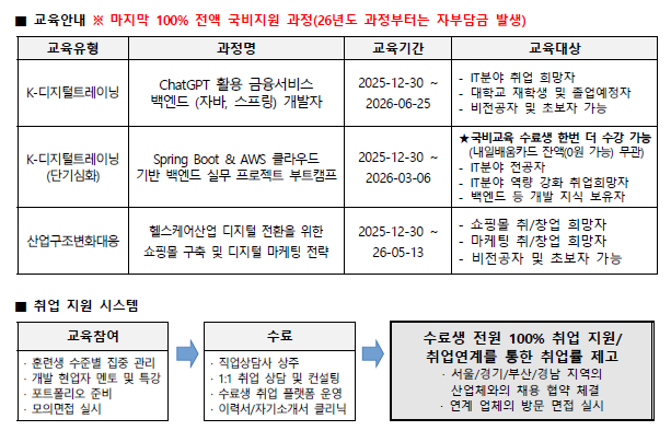 [아이티윌 부산교육센터] 고용노동부 직업능력개발훈련 교육 안내 (일정 변경)
